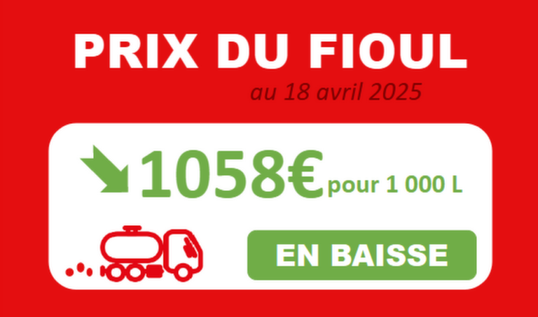Aujourd’hui, 18 avril 2025, le prix moyen du fioul chez FAMP est de 1058€ pour 1000L. Il est en baisse de 14€ par rapport à la semaine dernière, de 40€ par rapport au mois dernier et de 156€ en comparaison de l’année dernière à la même date.